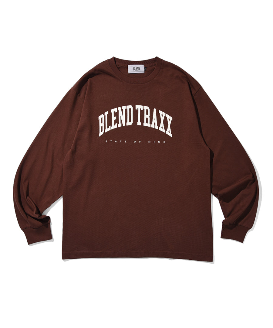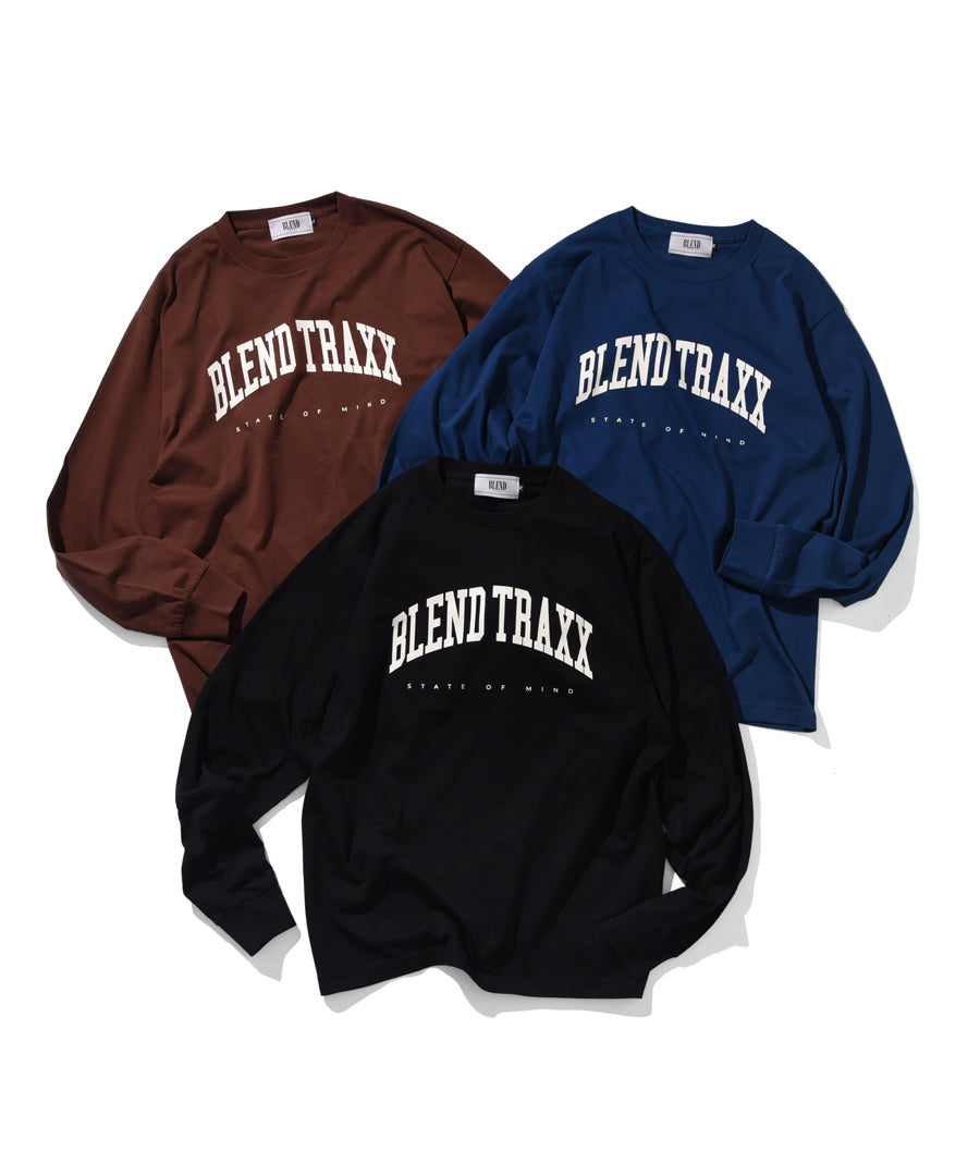 ・MUSIC&WEARをコンセプトに、架空のダンスミュージックレーベル『BLEND TRAXX』のカレッジロゴが落とし込まれたアメリカンライクなロングスリーブTシャツ。