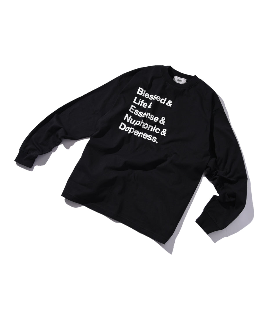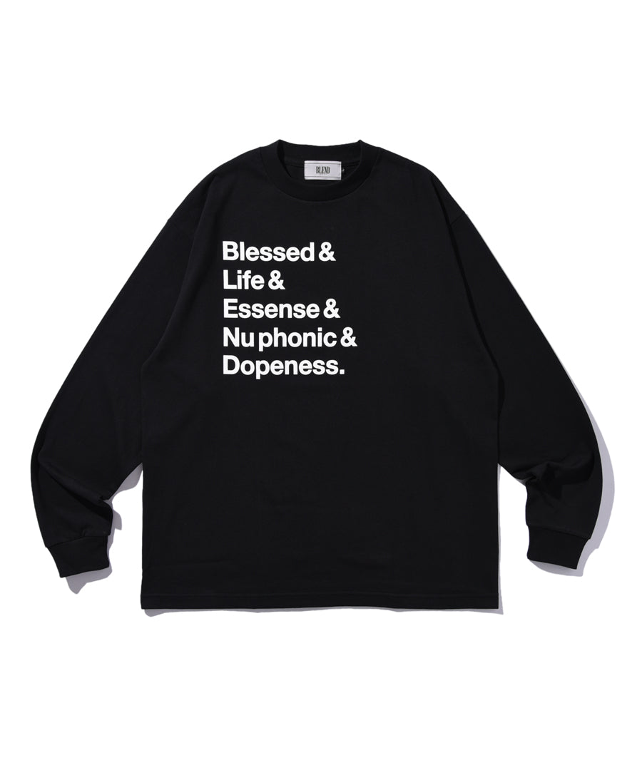 ・MUSIC&WEARをコンセプトに架空のダンスミュージックレーベル『BLEND TRAXX』より、音楽カルチャーへのスローガンが落とし込まれたロングスリーブTシャツ。頭文字を縦に読むと。。。。。
