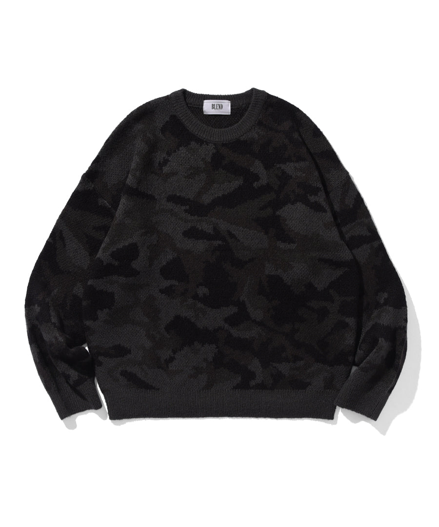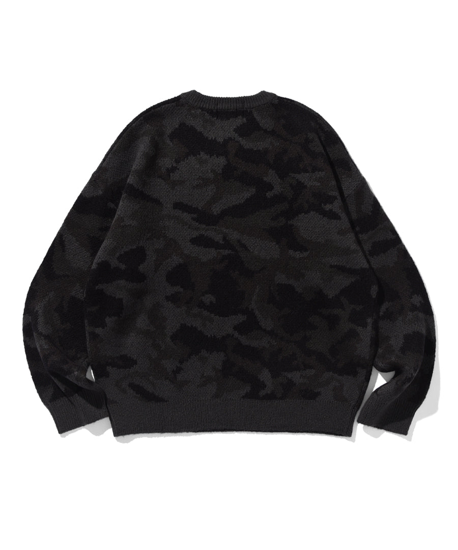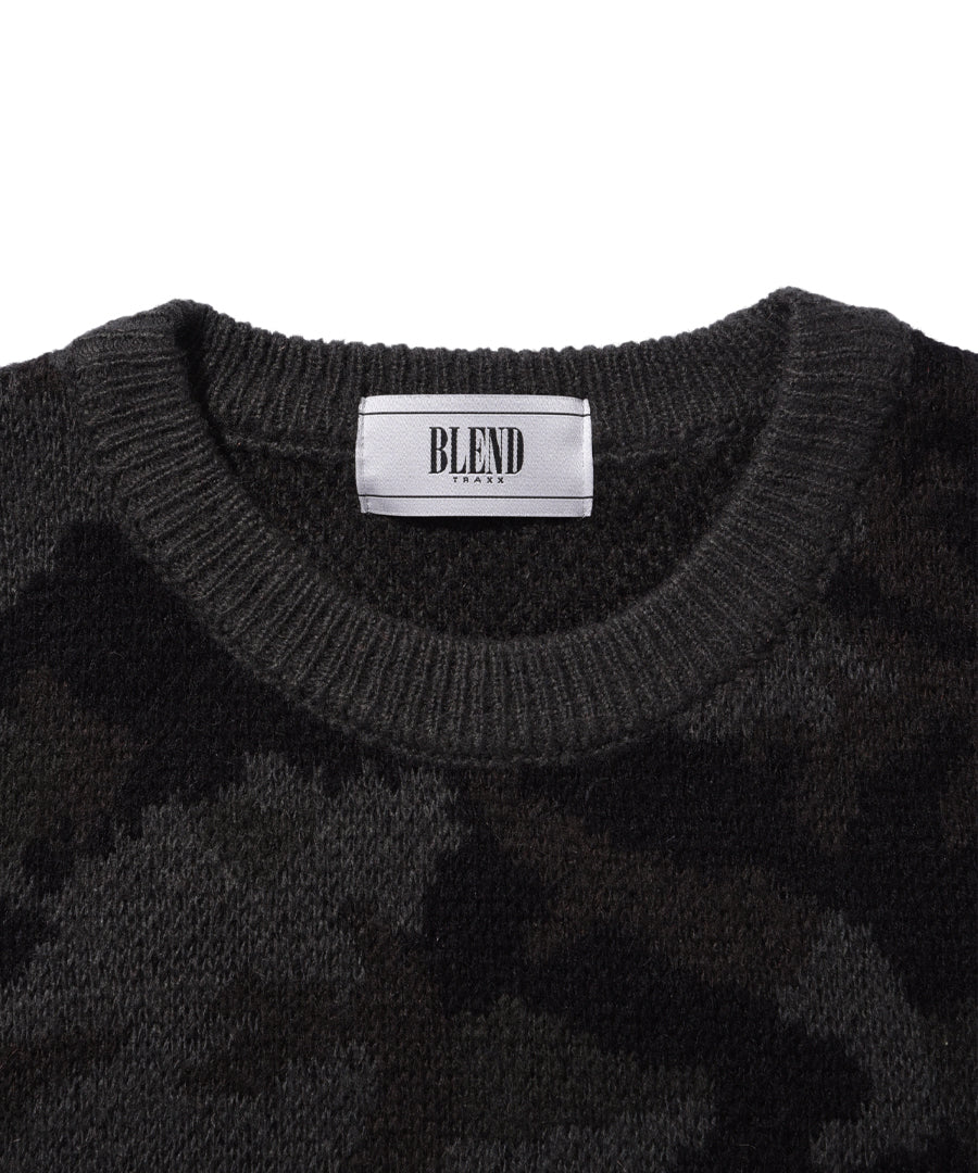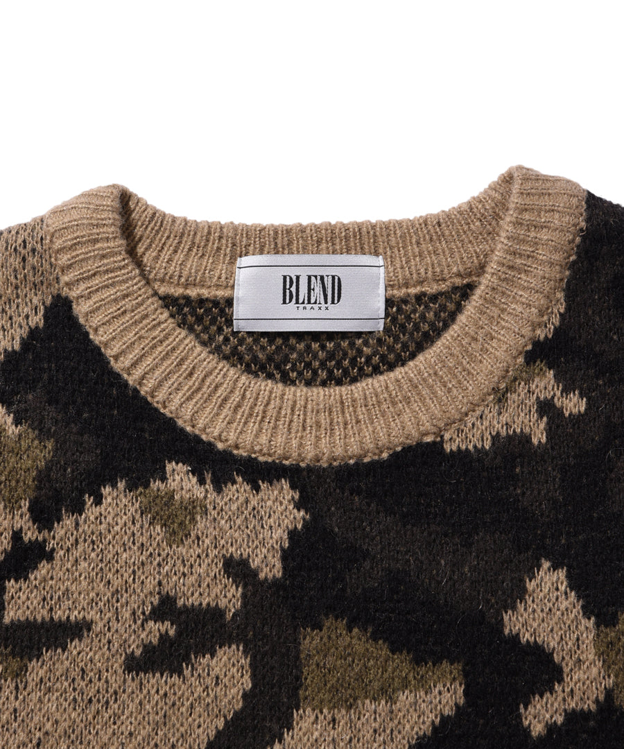 ・全面にカモフラージュ柄を落とし込んだクルーネックニット。
